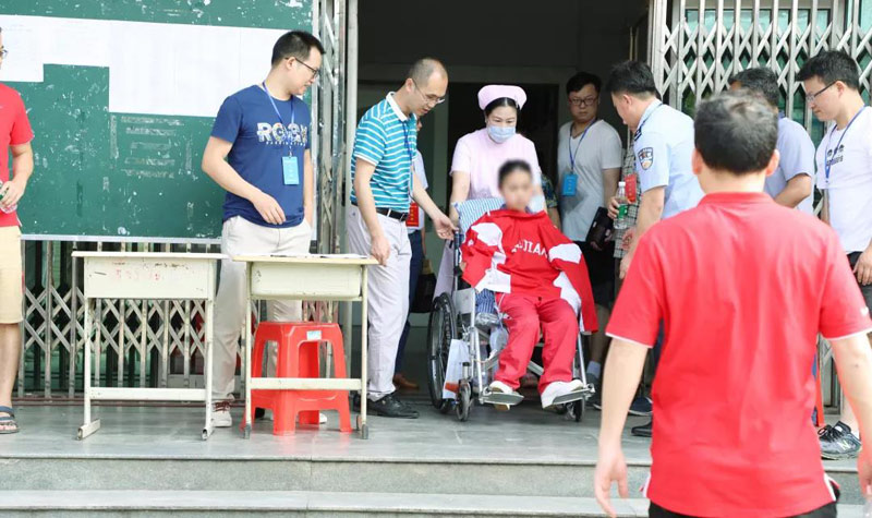 一路暢行,在醫(yī)務(wù)人員的幫扶下,小程進(jìn)入了考場,上午九點(diǎn)鈴聲響起,小程的高考開始了。