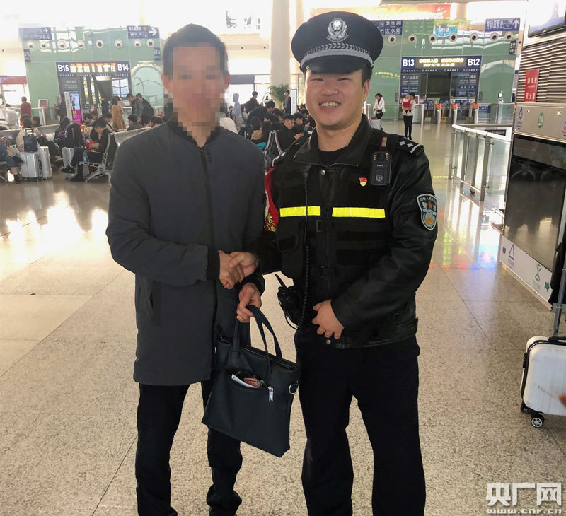 民警隨即詢問售票廳的執(zhí)勤警員,并調(diào)取監(jiān)控視頻進(jìn)行尋找,發(fā)現(xiàn)老陳的米色行李箱在他離開售票廳后,被一名好心的旅客交到了車站工作人員手里。5分鐘后,行李箱回到了老陳手中,包內(nèi)財(cái)物無一缺失。老陳激動(dòng)握住民警的手連聲道謝。