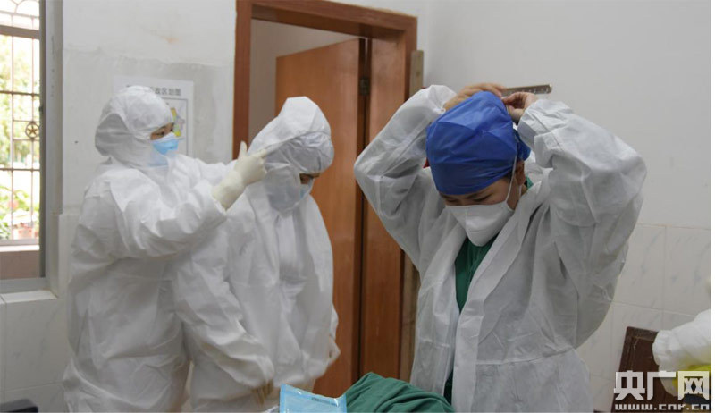 所有確診患者全部治愈出院后,醫(yī)護人員又著裝將對隔離病區(qū)進行全面消殺