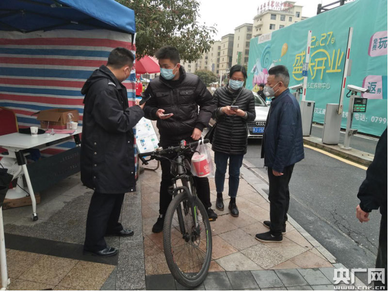 廖屹杰指導(dǎo)居民注冊“萍碼通”電子通行證