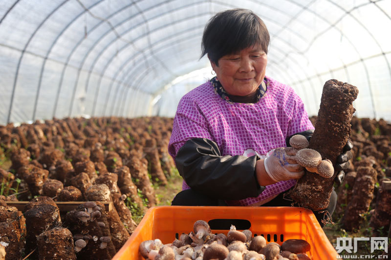菌菇合作社工人采摘香菇