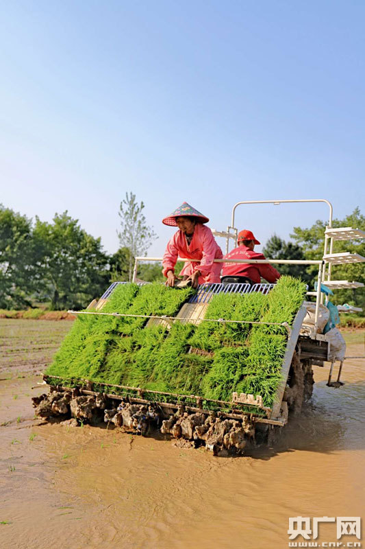 4月16日,在江西省吉安市吉水縣黃橋鎮(zhèn)太坪村,村民們正搶抓有利時(shí)機(jī)在田里忙著機(jī)插早稻穩(wěn)生產(chǎn),該縣已派出農(nóng)業(yè)技術(shù)人員下到各鄉(xiāng)鎮(zhèn)村組,指導(dǎo)農(nóng)民科學(xué)種田,進(jìn)一步提高早稻產(chǎn)量,增加農(nóng)民收入,預(yù)計(jì)全縣55萬余畝早稻將于4月底全部插上秧苗。