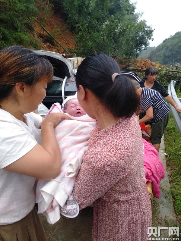 接到報(bào)警后,該鎮(zhèn)派出所民警、消防員和鎮(zhèn)村干部立即趕往現(xiàn)場展開救援。因通往現(xiàn)場多處道路被洪水和滑坡山體淹沒,救護(hù)車無法抵達(dá)現(xiàn)場,該鎮(zhèn)立即請來一名鄉(xiāng)醫(yī)幫忙生產(chǎn),凌晨6時(shí)13分,孕婦順利在自家車內(nèi)產(chǎn)下一子。