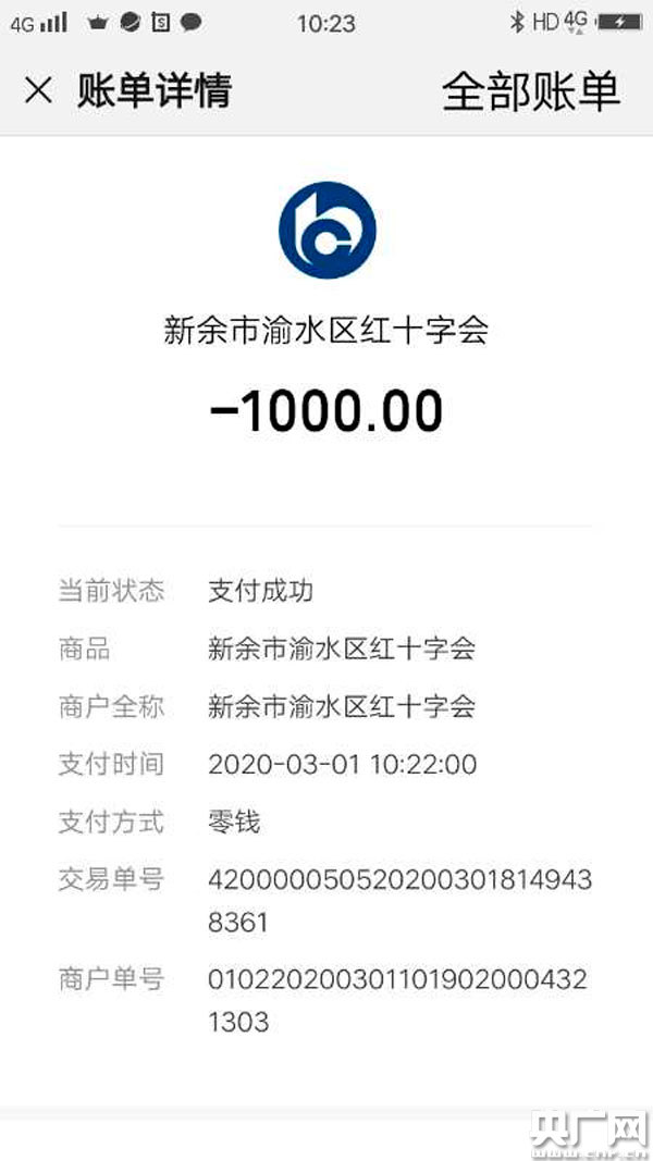 貧困戶胡建華向渝水區(qū)紅十字會(huì)捐資1000元