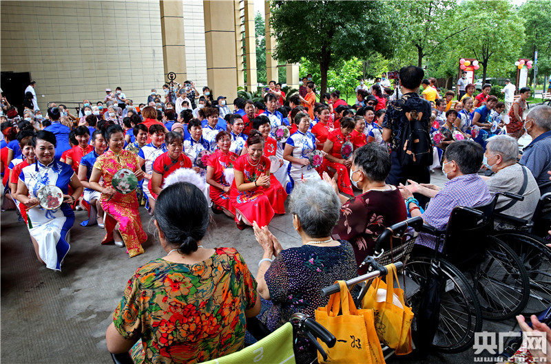 6月24日,在江西省南昌市青山湖區(qū)社會(huì)福利中心,來(lái)自社會(huì)各界的愛(ài)心志愿者正在為老人們表演廣場(chǎng)舞、旗袍秀、歌舞、舞龍燈等節(jié)目,讓老年朋友度過(guò)了一個(gè)開(kāi)心的端午節(jié)。