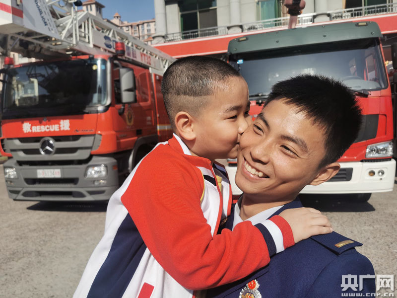 “開火”與消防員叔叔一起戰(zhàn)斗(央廣網(wǎng)發(fā) 通訊員供圖)