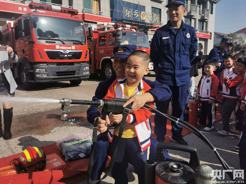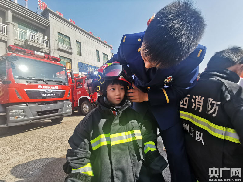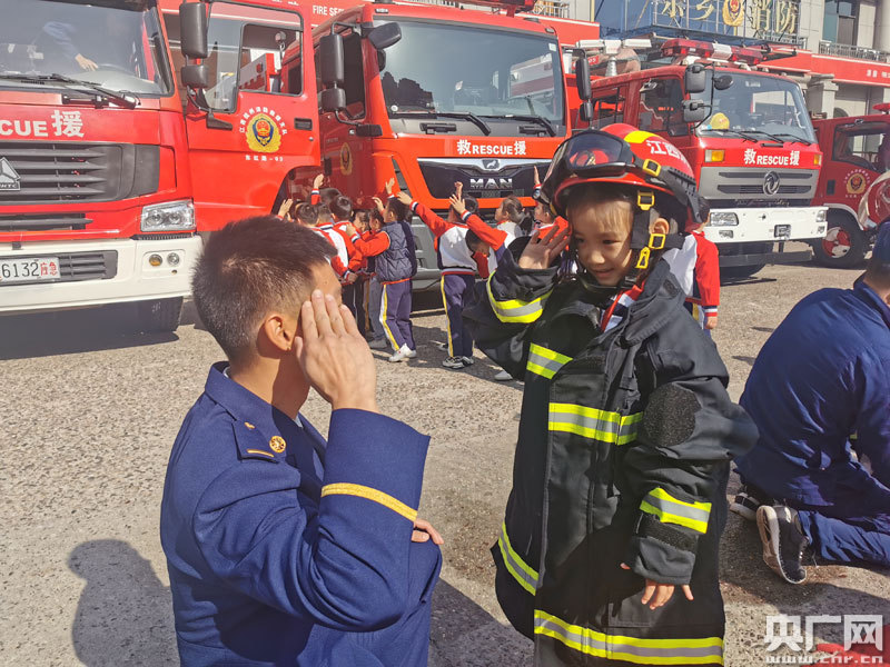 穿上消防服,長大我也要當(dāng)消防員(央廣網(wǎng)發(fā) 通訊員供圖)