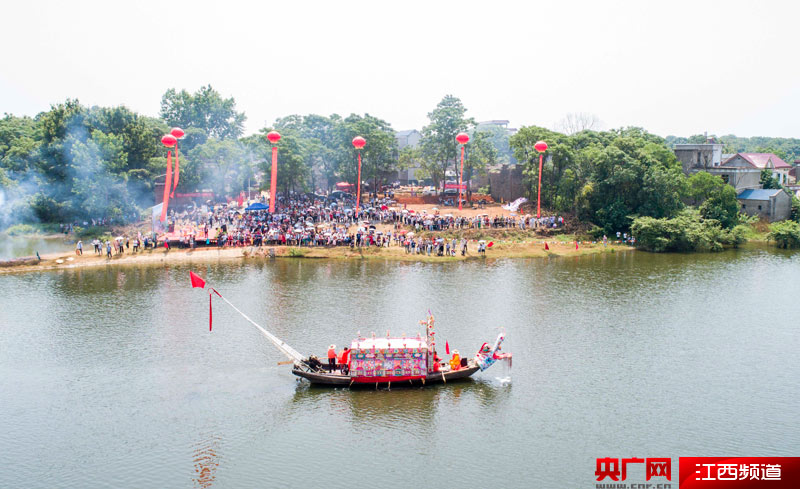 6月14日,在江西都昌縣南峰鎮(zhèn)白水村,龍船航行在水面上。