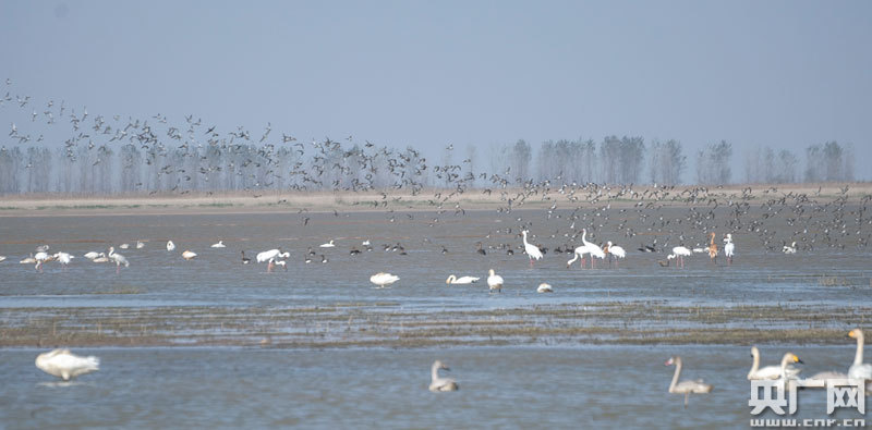 候鳥在淺水灘上棲息(央廣網(wǎng)發(fā) 通訊員章斌 攝)