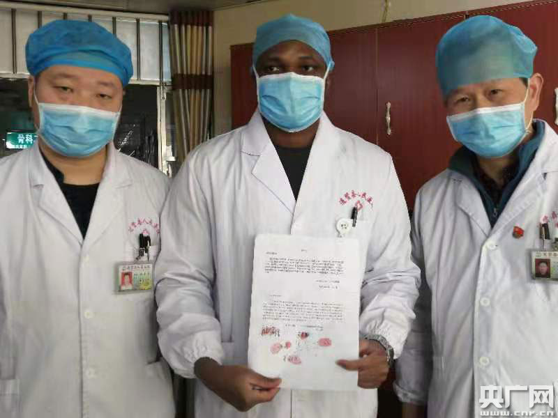 央廣網(wǎng)南昌1月29日消息(記者李竟成 通訊員周勇)“我鄭重向醫(yī)院提出請求,申請加入醫(yī)院組織的春節(jié)期間抗擊新型冠狀病毒肺炎的應(yīng)急隊(duì)伍,學(xué)習(xí)白求恩精神,同時(shí)志愿堅(jiān)守在抗擊病毒的第一線,為贏得抗擊病毒戰(zhàn)斗的勝利,保衛(wèi)中國人民群眾生命健康安全,貢獻(xiàn)自己的一份力量!”1月29日上午,一封特殊的“請戰(zhàn)書”送到進(jìn)賢縣人民醫(yī)院副院長周國進(jìn)手中,遞交這份“請戰(zhàn)書”的是來自非洲貝寧的留學(xué)生萊東翰。