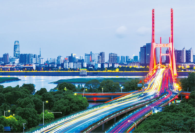 近年來,江西沿著習(xí)近平總書記指引的方向和道路砥礪前行,明確把推進江西高質(zhì)量跨越式發(fā)展作為首要戰(zhàn)略,發(fā)展的成色更純、底色更亮、根基更牢。圖為2020年5月22日,江西省南昌市的地標(biāo)建筑——八一大橋。 人民圖片 徐國亮/攝