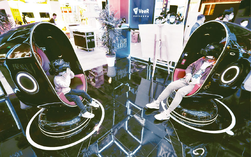 江西堅持以供給側(cè)結(jié)構(gòu)性改革為主線,扭住創(chuàng)新這個“牛鼻子”,做強產(chǎn)業(yè)這個“主支撐”,在擴量提質(zhì)中加快新舊動能轉(zhuǎn)換。作為2020世界VR產(chǎn)業(yè)大會的一項重要內(nèi)容——2020VR/AR產(chǎn)品和應(yīng)用展覽會在南昌舉行。圖為2020年10月20日,江西南昌綠地國際博覽中心,市民在體驗VR觀影。 人民圖片 徐錚/攝