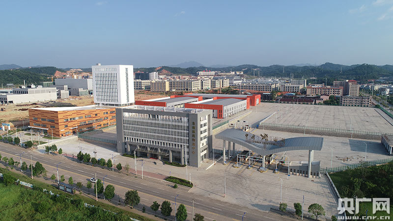 圖為龍南保稅物流中心(B型)是江西省唯一一家在運(yùn)營(yíng)的保稅物流中心(B型),于2016年10月26日獲得海關(guān)總署、財(cái)政部、國(guó)家稅務(wù)總局、國(guó)家外匯管理局批準(zhǔn)設(shè)立,2017年12月22日建成驗(yàn)收,可為企業(yè)提供保稅倉(cāng)庫(kù)、進(jìn)口保稅、出口退稅、展示交易以及全球采購(gòu)和國(guó)際分撥、配送等服務(wù)。圖為龍南保稅物流中心全貌。(央廣網(wǎng)發(fā) 通訊員龍軒 攝)
