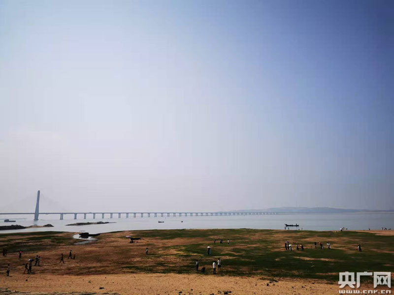 鄱陽(yáng)湖都昌老爺廟水域水位大面積下降(央廣網(wǎng)發(fā) 通訊員付文龍 攝)