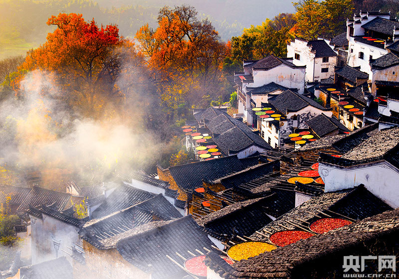 央廣網(wǎng)婺源9月29日消息(記者王一凡 通訊員江淦泉)眼下,正是曬秋好時(shí)節(jié)。天剛蒙亮,在婺源篁嶺景區(qū),吳向陽和“曬秋大媽”們正張羅著怎么擺放新一天的曬圖。裊裊炊煙升起,住在篁嶺“曬秋美宿”的游客推開窗欞,架起“長槍短炮”,定格下曬秋勞作的鄉(xiāng)村晨景。
