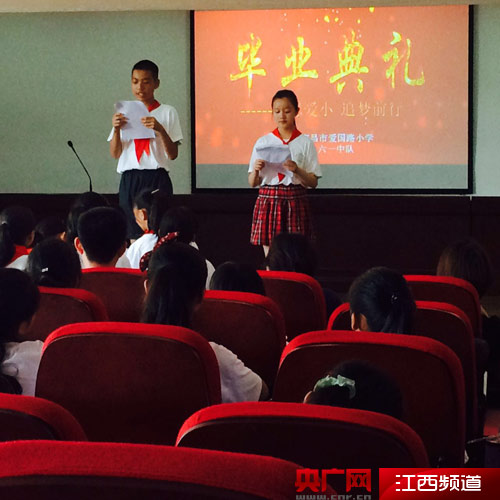6月20日,南昌市愛國路小學六(1)班舉行了畢業(yè)典禮,學生代表發(fā)言,感謝辛勤培養(yǎng)他們的老師和母校。