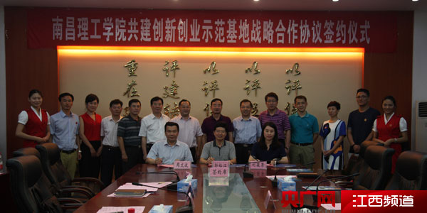 南昌理工學(xué)院,南昌國(guó)家高新區(qū)管委會(huì),江西省青年眾創(chuàng)創(chuàng)業(yè)服務(wù)有限公司簽定共建“南昌理工學(xué)院創(chuàng)新創(chuàng)業(yè)基地”戰(zhàn)略合作協(xié)議書。