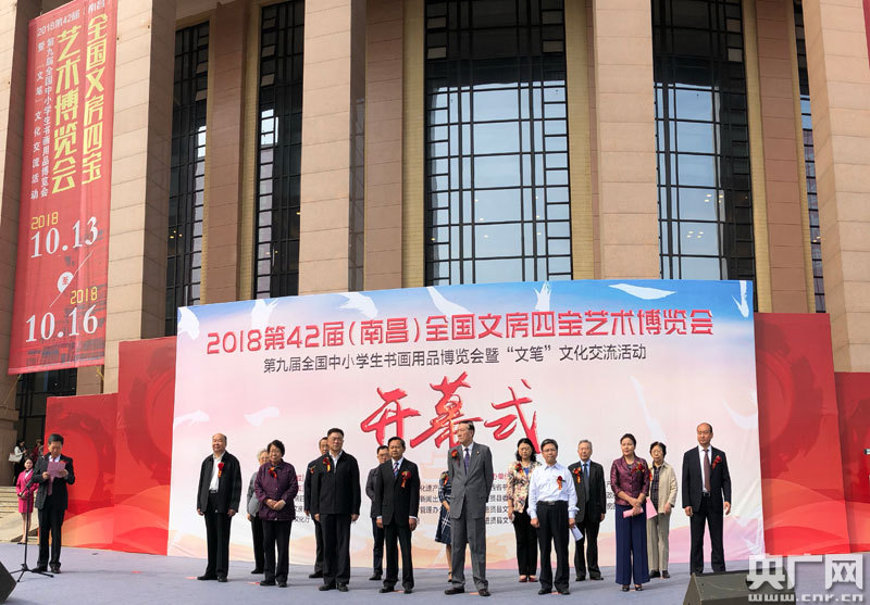 央廣網(wǎng)南昌10月15日消息(記者范存寶 見習(xí)記者于子敬 趙小羽)10月13日,第四十二屆全國文房四寶藝術(shù)博覽會、第九屆全國中小學(xué)生書畫用品博覽會暨“文筆”文化交流活動(以下簡稱文博會)在江西省展覽中心開幕。