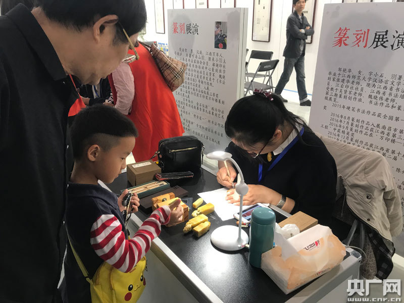 江西省傳統(tǒng)工藝展篆刻展演(央廣網(wǎng)發(fā) 趙小羽 于子敬攝)