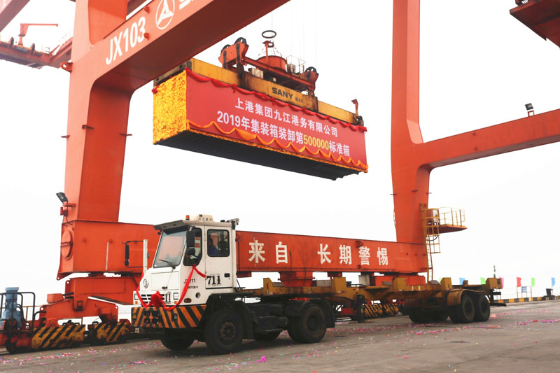 2019年12月30日,九江城西港區(qū)集裝箱碼頭吞吐量達(dá)50萬標(biāo)箱。石琪攝