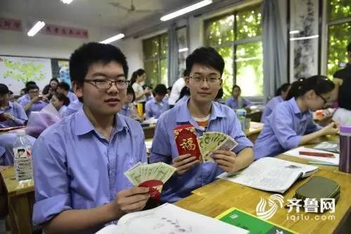 “7塊5毛,就是750分,也就是咱們高考的滿分。每位同學(xué)都拿到了紅包,希望你們每個(gè)人都能在考試中,拿到750分!”這是班主任呂老師給每一位孩子的祝福。