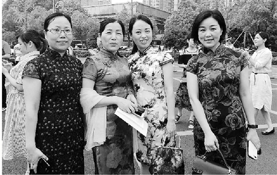 杭二中濱江校區(qū)一些學(xué)生家長(zhǎng)不約而同穿起旗袍。