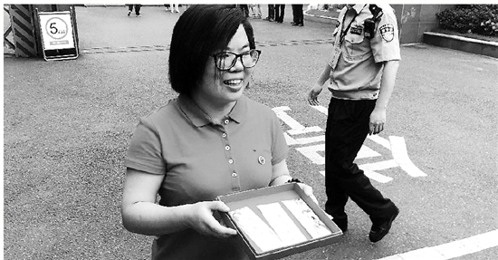 還有的家長(zhǎng)透著從容。一位媽媽穿著光鮮,一早就提著親手做的餃子、餛飩等在校門口。待她住校的兒子起床,從她手里拿走愛心便當(dāng)以后,媽媽就開始在校門口自拍了,并大氣接受各路媒體采訪,侃侃而談。然后大家還發(fā)現(xiàn)她腳下還有一大袋食物!斑@個(gè)是給我和我老公準(zhǔn)備的,我們一邊等一邊吃!”