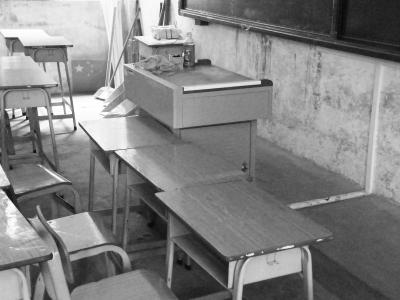 課桌擺到了講臺(tái)邊上