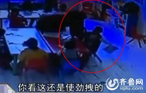 孩子上課時(shí)被老師拖拽。(紅圈中拿書(shū)者系孩子)