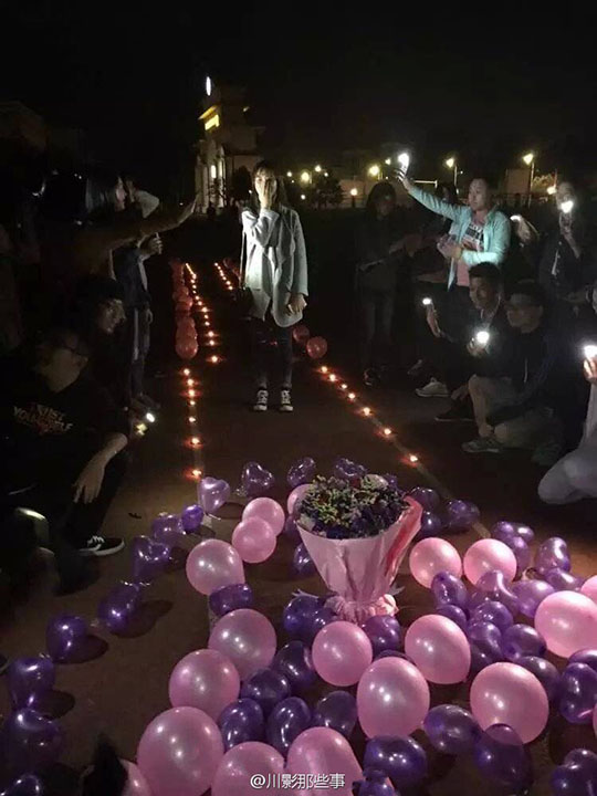 4月6日晚,四川電影電視學(xué)院操場上川影2015級編導(dǎo)六班的同學(xué)們給美女輔導(dǎo)員過生日,全班男生單膝跪地唱《小幸運(yùn)》。同學(xué)們給美女輔導(dǎo)員過生日。同學(xué)們給美女輔導(dǎo)員過生日。同學(xué)們給美女輔導(dǎo)員過生日。