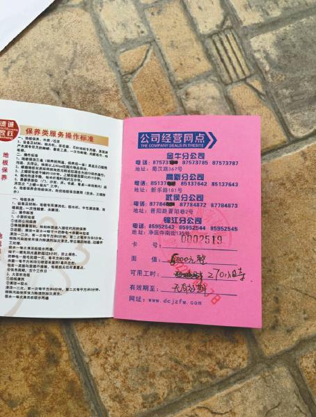 然而,4月30日苦等一上午,馮錦也沒有等到保潔人員來家里。更讓馮錦納悶的是,印在會員卡上的公司的12個服務(wù)電話,居然沒有一個能撥通。馮錦有些坐不住了,她往家政公司走去……