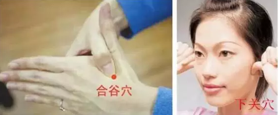 合谷位于雙手虎口的最高點,下關在面部,耳朵前方,顴骨下方的凹陷處。