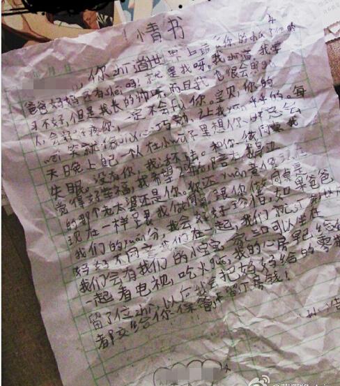 從網(wǎng)傳的情書內(nèi)容可以看到,這位小男生很是癡情:“以后我們會有我們的小寶寶,一家三口可以坐在一起看電視,吃huo鍋!薄耙院笪視褘寢尳o的零花錢都交給你保管,不留私房錢!”
