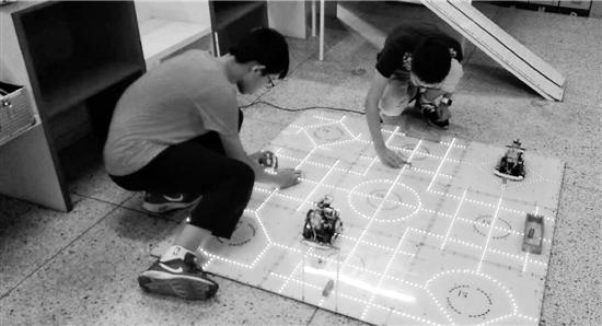 “路線有問題,還需要調(diào)整!焙芸,他們又竄進(jìn)隔壁的計(jì)算機(jī)房,啪啪啪敲打鍵盤,調(diào)整機(jī)器人的編程代碼。