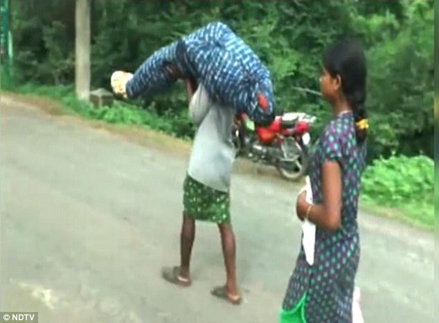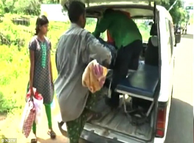 圖為志愿者叫來幫忙的車運(yùn)走了Dana Majhi的妻子。