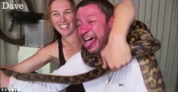 據(jù)英國《每日郵報(bào)》8月25日報(bào)道,英國蟲害防治員克雷格 弗里曼在澳大利亞錄制一檔真人秀節(jié)目時(shí)被一條巨蟒繞頸,無法脫身,其美女搭檔凱莉當(dāng)即施以援手,幫他脫險(xiǎn)。