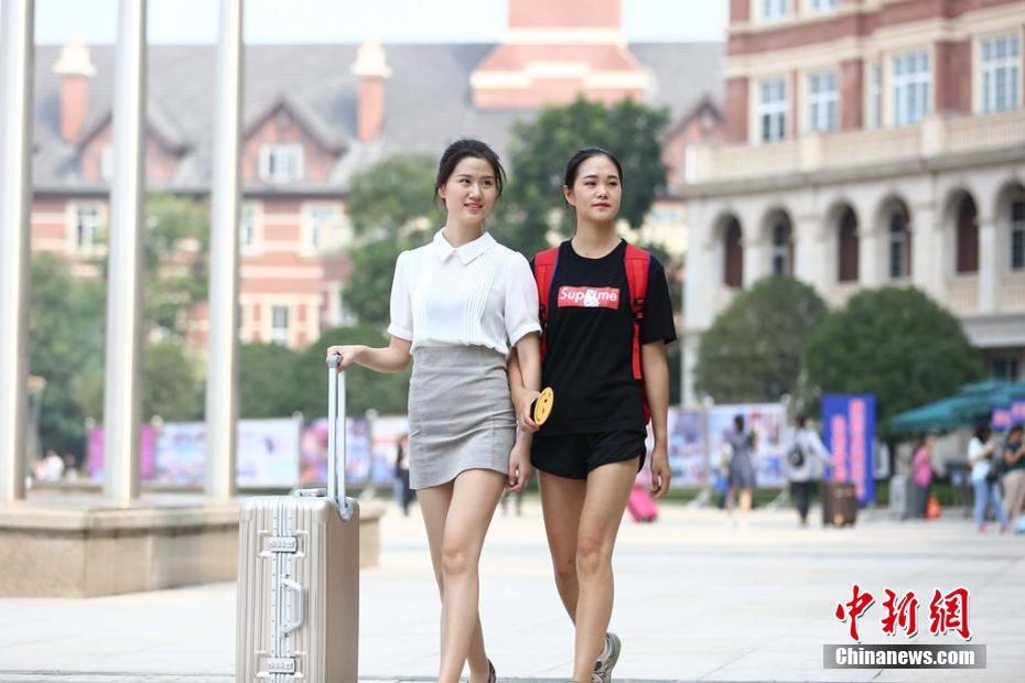 除了新生靚麗吸睛,接待新生的學(xué)長學(xué)姐們也是顏值“爆表”。