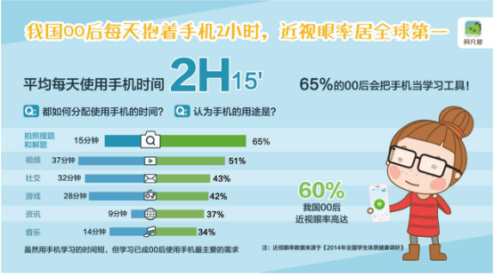 調(diào)查顯示:近視眼率居全球第一的00后,每天抱著手機2小時