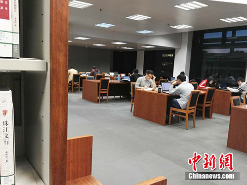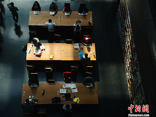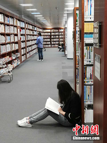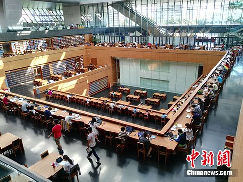 王贊向記者證實(shí)了這樣的說法,“前幾個(gè)月放暑假的時(shí)候,來看書的人就很多。那時(shí)候甚至有不少人坐在(閱覽室的)地上看書,靠著墻,一排一排的”!斑@幾天大家都放假,人會(huì)多些。暑假時(shí)看書的人更多,如果晚到一點(diǎn)可能就占不到好座位了!
