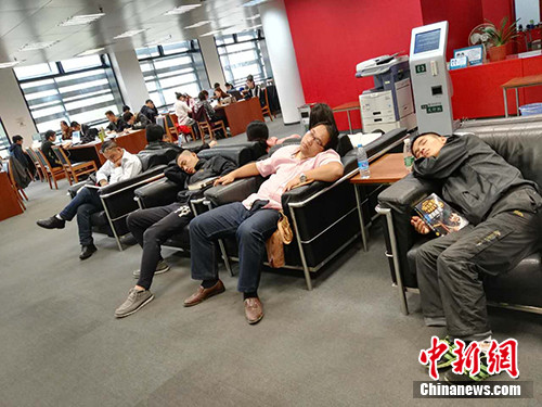 記者在國圖看到,在類似沙發(fā)的座位上,幾位讀者正在睡覺,有人手中還捧著書。
