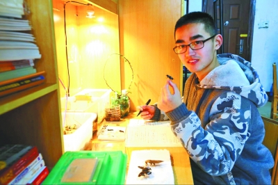 “趙宇晨一心撲在蟲子上,跟著了魔似的,平時就愛鼓搗這些‘小寵物’!笔苴w宇晨的影響,張壯等三位室友也加入其中,幫趙宇晨“哺育”他帶回寢室的昆蟲們,“我們宿舍都快成蟲子樂園了。時常有同學慕名前來參觀!