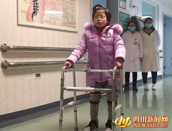 29日上午10點(diǎn),在成都溫江的一家醫(yī)院病房過道上,9歲的琴琴雙腿帶著護(hù)具,雙手搭在走路輔助設(shè)備上,在不需要醫(yī)生幫助的情況下,她自己緩慢地往前走著……據(jù)了解,琴琴今年6月在安岳老家被人發(fā)現(xiàn)時(shí)已經(jīng)臥病在床,全身多個(gè)部位長有嚴(yán)重褥瘡,大小便失禁。今年6月17日,在成都市殘疾人福利基金會(huì)的幫助下,琴琴來到成都溫江一家醫(yī)院接受治療,來自社會(huì)各界的善款達(dá)40萬,琴琴的治療費(fèi)用有了一定的保障。醫(yī)院全院護(hù)士輪流值班守護(hù),經(jīng)過半年多的治療,琴琴站了起來。