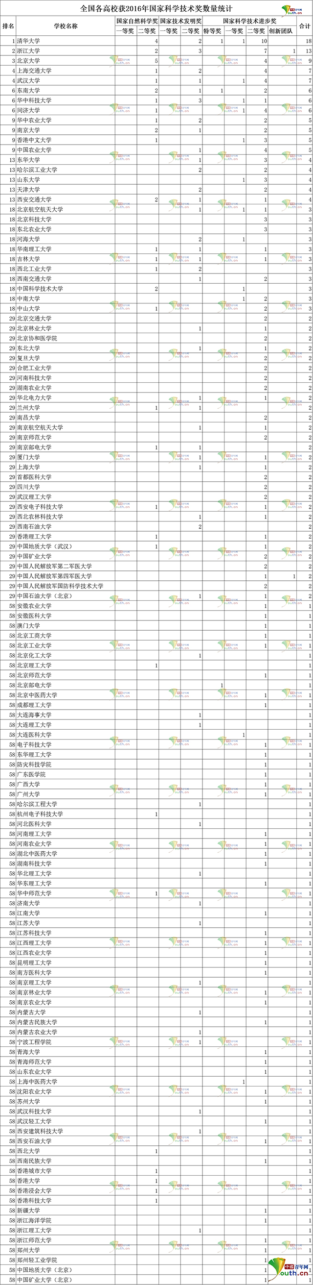 附1:全國各高校獲2016年國家科學(xué)技術(shù)獎數(shù)量統(tǒng)計(jì)