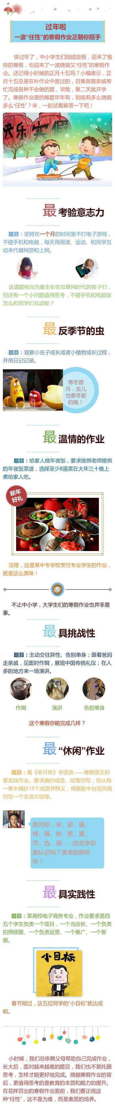 學(xué)會拜年、置辦年貨、體育鍛煉、親子閱讀、職場啟蒙……你沒看錯,這些都是皇姑區(qū)各小學(xué)的特色寒假作業(yè)。而今年,皇姑區(qū)30所小學(xué)的寒假作業(yè)大變樣:紙質(zhì)傳統(tǒng)作業(yè)漸被新式作業(yè)代替,一系列新式寒假作業(yè)將讓05后的假期有滋有味。