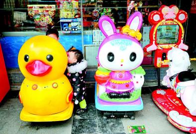 “爸爸的爸爸叫什么,爸爸的爸爸叫爺爺……”一邊播放著童謠,一邊搖晃擺動的兒童搖搖車,在城市中隨處可見。只要投進一元硬幣,小朋友就能乘坐三分鐘。由于價格便宜、造型卡通、色彩鮮艷,這種搖搖車受到不少小朋友的歡迎。春節(jié)期間,孩子們排隊爭坐搖搖車的場景更是常見。