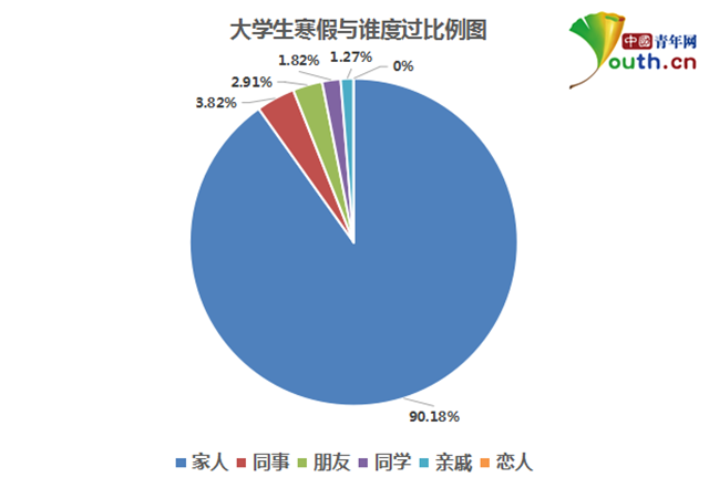 圖為大學(xué)生寒假與誰度過比例圖。中國青年網(wǎng)實習(xí)記者 李華錫 制圖
