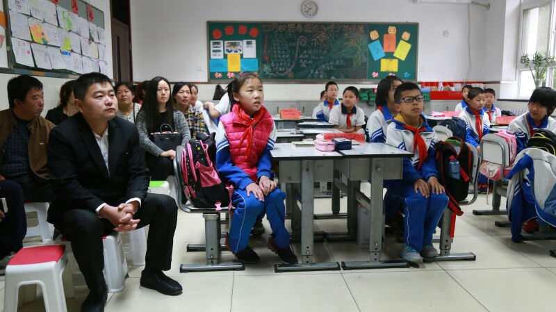人民網(wǎng)北京4月20日電 (趙英梓)昨日,北京市朝陽區(qū)和平街中心小學(xué)舉辦“校園開放日”,此次開放日的主題為“家校協(xié)同齊發(fā)展 和悅課程育少年”,共有500名左右學(xué)生家長參加了此次活動。由于和平街中心小學(xué)兩址辦校,所以此次活動在高部、低部兩校區(qū)同步進(jìn)行。