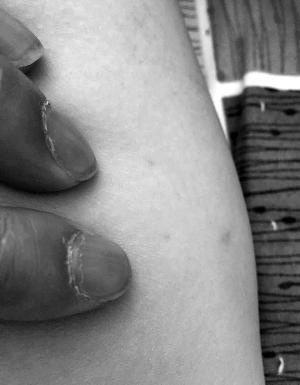 圖中圈出為一名孩子身上的兩個(gè)針眼。