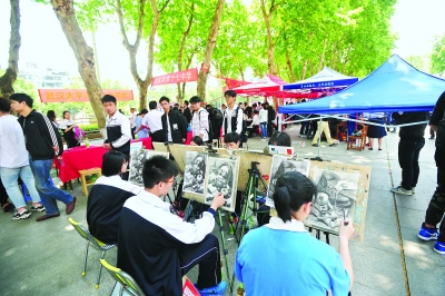 昨日在市十一中的中招咨詢會(huì)上,有的學(xué)校安排學(xué)生現(xiàn)場作畫展示教學(xué)水平 記者彭年 攝