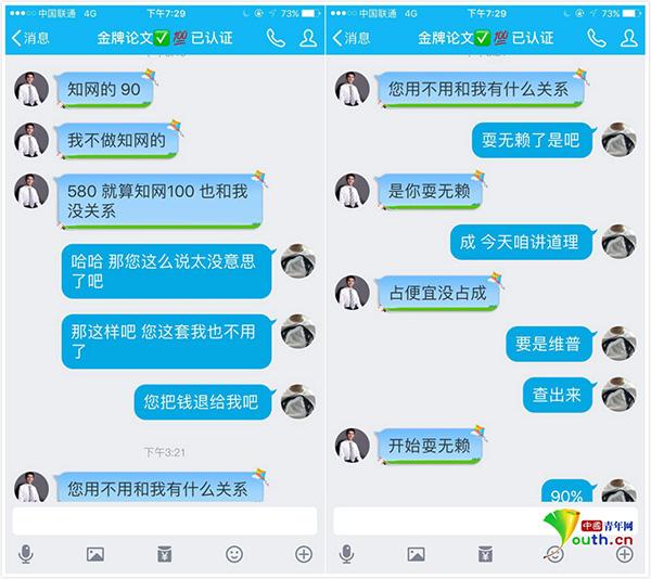 每年5月,千萬學(xué)子要通過畢業(yè)論文結(jié)束大學(xué)生涯,這也催生了論文代寫的灰色市場(chǎng)以及騙局。哈爾濱某大學(xué)大四學(xué)生張良告訴記者,3月份自己通過朋友拿到了一個(gè)做論文代寫生意的賣家“金牌論文”的QQ號(hào),4月因畢業(yè)實(shí)習(xí)沒有時(shí)間寫論文,便決定通過“金牌論文”購買論文,與他一起購買論文的還有同班的8個(gè)同學(xué),結(jié)果因?yàn)椴橹芈蔬^高,自己和同學(xué)損失了近5000元代寫費(fèi)。5月25日,距答辯還有半個(gè)月,張良不得不重新修改論文。